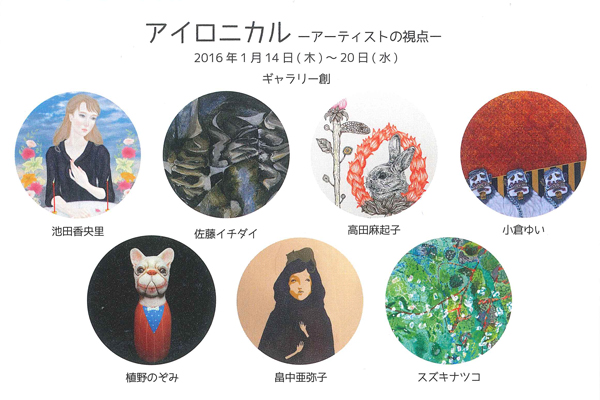 展覧会のテーマの「アイロニカル」を背景に7人の作家が制作します。 アイロニーとは、表面的な立ち居振る舞いによって本質を隠すことです。 ユーモラスに皮肉る、 また「嘲笑的な」意味を持つ作品も展示されます。」 キュレーション サノエミ