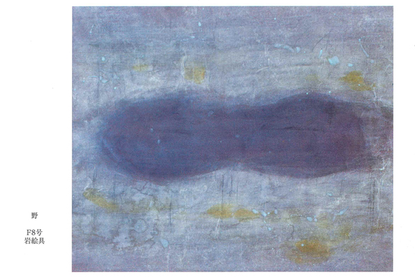 「岩絵の具に手漉き紙で描いています。 具象画ですが、相当抽象的です。 具象画といっても写生はほとんどせず、記憶で描いています。 記憶の中で描きたいものが整理される気がします。 美しい色彩で描きたいですが、 結果として私の存在そのものまで描けたらいいのですが。」 本間孝江氏。