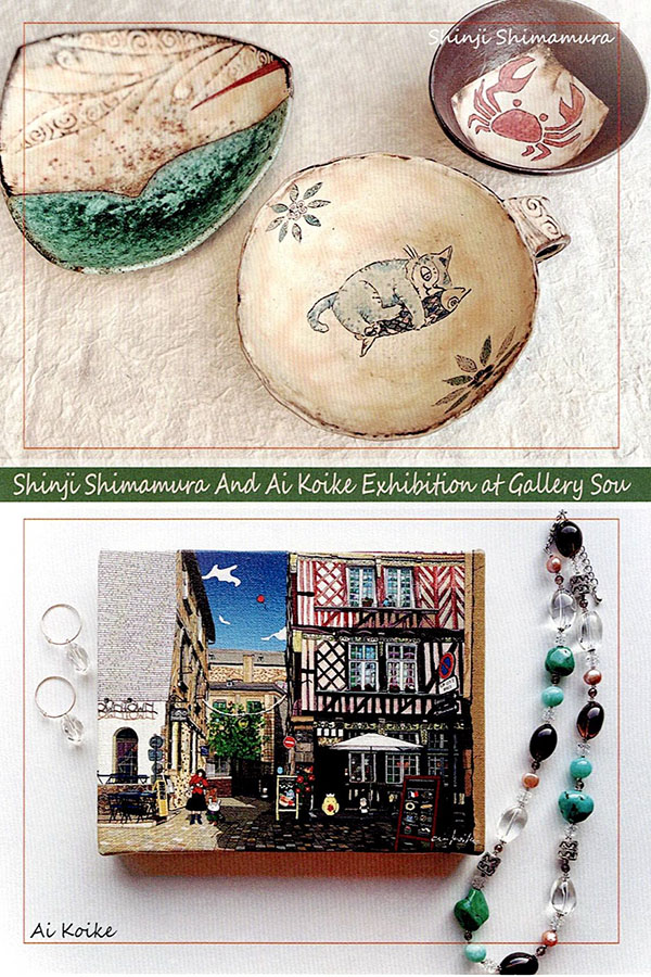 楽使器とフランスの風景画 島村真司の暮らしの中で使える器(楽使器)をテーマにした陶芸作品と踊る書や、 小池愛のTikiとPuffyの旅するグラフィックアートと色彩を奏でるアクセサリーを 展示販売いたします。